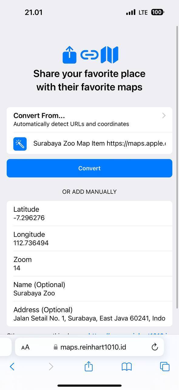 Now you can directly share from your favorite map apps to Reinhart Maps by installing this app on one of these supported browsers or through this Shortcut for iPhones and iPads.